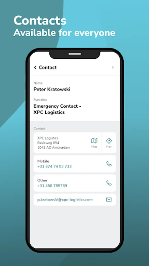 • CONTACTS: Make the contacts that are important for your blue light organization accessible to all app users in your team and thus increase the reaction speed in the field.