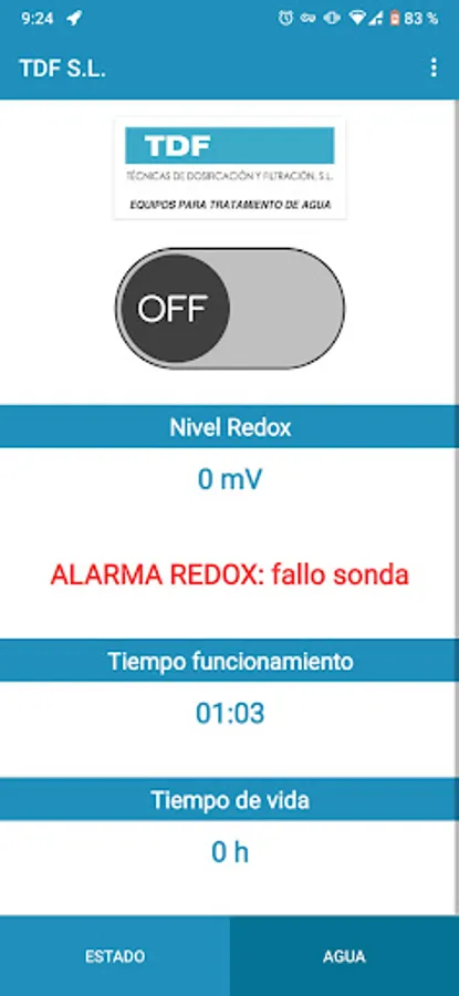 Wireless control tool and display of parameters of the TDF O3 equipment