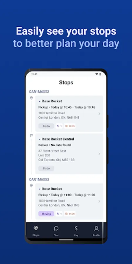 • View stop information at a glance: Find important reference numbers, special instructions, and details about each stop.