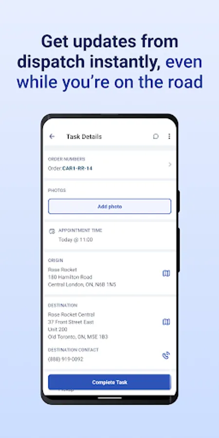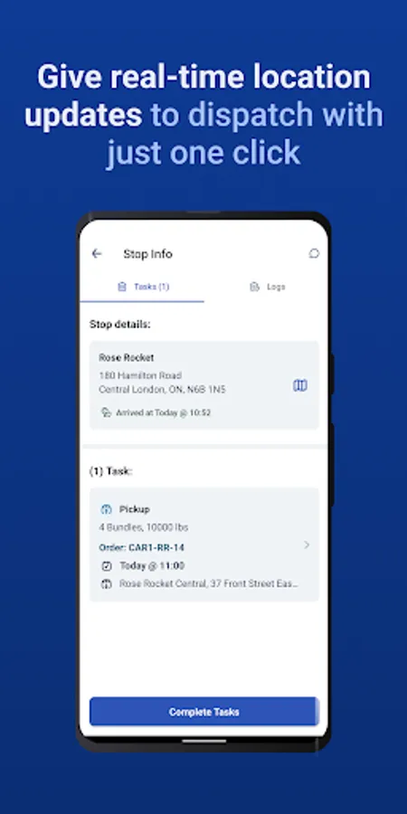 • Send real-time order updates: With one click you can communicate your progress at a stop without disruptive phone calls.