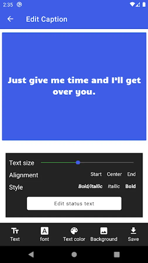 -Quote Writer helps you to create status with image text and background and use them directly as Photos quotes.