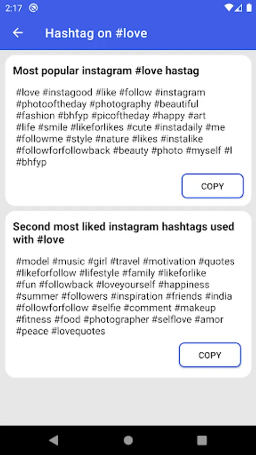 With Best quotes and Captions from this app, you can also attract the top more likes and followers on Social media . Just browse through our handpicked masterpieces, use them as your caption and voila! Your chain of likes and comments gets triggered. You are about to become famous among your peers, and people will soon turn to you to get cool captions for their photos. You can also share captions with your friends and partner right from the app.