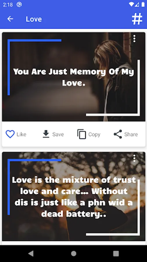 -copy status, like status, share status and even save quotes as an image in your device and use them anywhere you want.