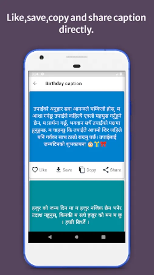 : It is difficult to think of eye-catching birthday status in Nepali every time, As we need to wish a birthday to our friend, mother, father, loved ones, or any other person. You can use the Nepali caption application to wish birthday using birthday wish status in Nepali language from this application.3.