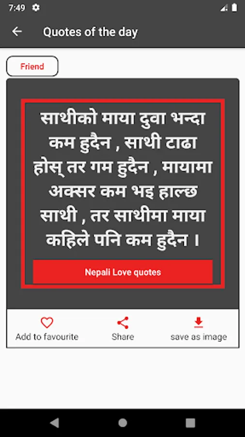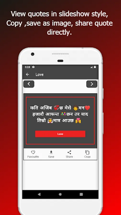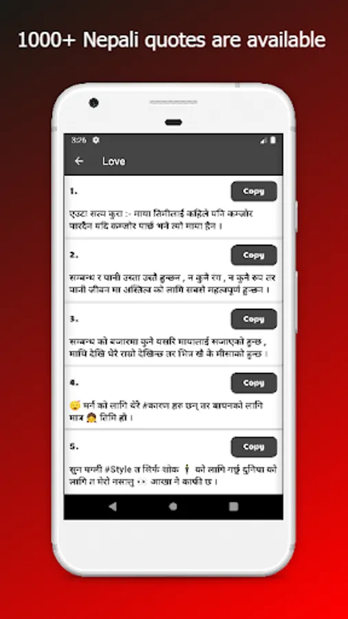 With 10+ different categories and 1000+ Nepali quotes, Nepali Love Quotes And Nepali Love Shayar is the best Nepali quotes application. Expressing yourself to your loved ones will best very easy with our application containing Nepali love, life birthday anniversary status.