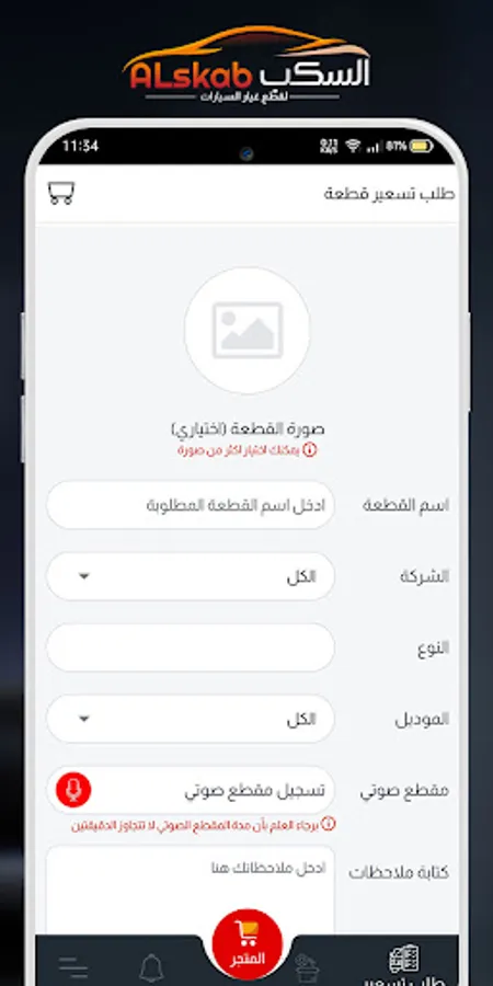 تطبيق السكب لبيع قطع غيار السيارات المستعملة و المستوردة منصة يستطيع التاجر من خلالها تقديم عروض تسعير علي القطع و الإستفسارات ويستطيع العميل شراء القطع من خلال المتجر او التفاوض علي القطعة و بيعها .