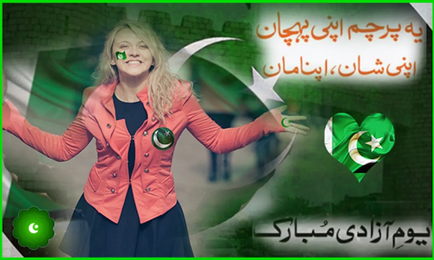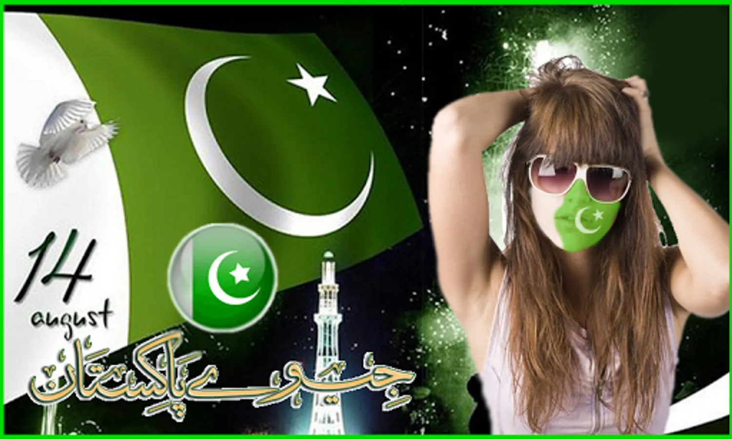 With Pak flag stickers on your face make every day your favourite independence day, Defence day, Pakistan Resolution Day or any other national day and enjoy it with Pak Flag Photo Maker effects to add Pakistan flag flower, Pak Flag birds shape, pak flag face shape, faisal masjid stickers, minaar e Pakistan stickers, Pakistan Army Stickers/Dress, 23rd March stickers, Pak flag 14 august text, Dil Dil Pakistan text or Jeewy jeewy Pakistan text effects and sticker on your photo face, shirt or in background through which you make your photo with Pakistan flag sticker and badges as well as with background Pak flag effects. It is especially design to celebrate Independence Day and make your photo more creative with Pakistan flag and share with your friends to show your patriotism also you can set these Pak flag pictures on your social media DP or profile DP or get 14 August Pics, Dresses, Cover Photos, Star Sign and much more.