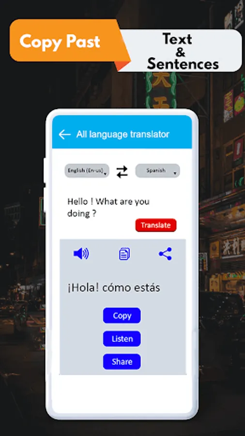 💎Share Translated text on Social media with your friends and followers.