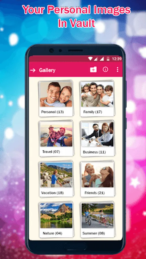 Hide your photographs and videos in gallery vault using advanced encryption techniques to prevent accidental loss or to keep them safe from other users such as coworkers, acquaintances, and family members. There is no need to be concerned about your personal files when your phone is in the hands of others because you can keep your files in a secret vault that will never be shown to other users, your personal life private stuffs will be secure more precisely in a secure location, only you can see these files you have complete control over through our secure vault gallery application.