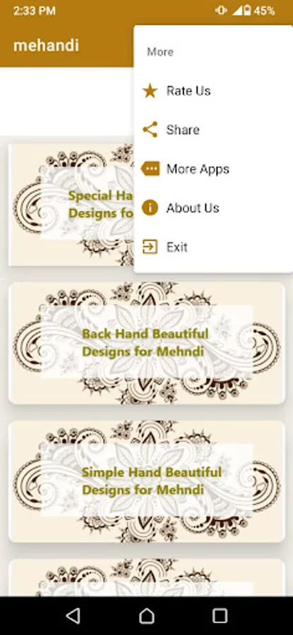 Apply mehendi design simple with different back hand mehndi design. As well as we included Dulhan Mehndi Design that is absolutely Mehndi Designs easy and simple to understand. It’s the latest Mehndi Design app like many new Mehndi Design. Watch & apply new Mehndi Design through this Mehndi Design simple app. Use this simple Mehndi app because you will like our Mehndi Design easy and beautiful app.Watch the latest Mehndi Design with this henna Designs app for Ladies' fashion. Look Mehendi Design image that we provide nicely in our easy Mehndi Design application. As well as it has bridal Mehndi Design download this henna Designs app that has many Mehandi layouts for free. Traditional Mehndi Designs 2023-Mehndi Styles 2023 got hundreds of following categories. This type of design is highly intricate and very carefully made with no spaces left in between. The patterns are placed very closely together to create a continuous design. The designs that the Indians have come up with are enticing. With mango and peacock henna designs as their specialty, Indian mehndi looks very appealing and it is loved by women all over the world. These designs are every women’s favorite when it comes to weddings or festivals. For religious festivals like Eid, very thin or intricate mehndi patterns are applied while for weddings, brides usually go for mehndi designs that have no blank space and look very lavish. Hand designs are usually highly preferred by women as they are less tacky and cannot be easily smudged. With the trend of minimalism nowadays, women usually prefer thin mehndi on their fingers or just on the palms. Mehndi Designs Offline contain most recent one of a kind simple mehndi designs and most recent high resolution mehndi designs images. Mehndi Design 2023 used by popular Mehndi Performers and it is their most favourite mehndi design app .Download this App and made your hands as pretty as ever. Trending Mehndi Design app contains mehndi designs. This is a mehndi designs 2022 latest offline app for android. Perfect latest Mehndi designs images to look different at parties, wedding & friends gathering function. Moreover this app has offline mehndi designs. It has mehndi designs for hands, fingers , foot and also has Body tattoo mehndi Designs and mehndi designs for kids. If you want to learn mehndi designs for beginners then this app has all Bridal.