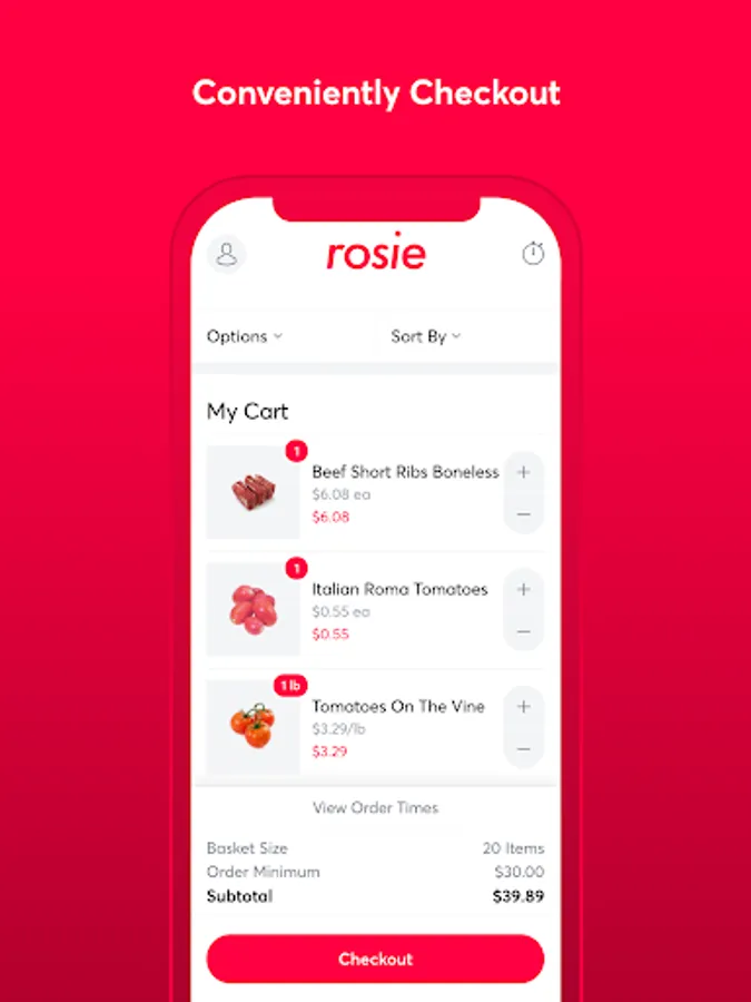 - Sync your Rosie shopping experience seamlessly across the Rosie mobile app and website.