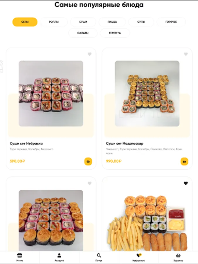For you we have a wide selection of Japanese cuisine, here you will find many types of sushi, rolls and other Japanese dishes. Be sure that everything is prepared only from fresh products and the chef starts preparing your dish only after receiving the order, so that the food brought for you does not have time to cool down. We work every day from 10.00 to 24.00, food delivery in Ufa is free of charge if the order amount exceeds 500 rubles, except for remote areas.