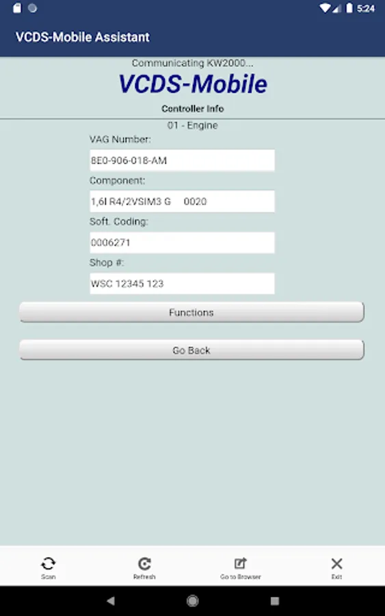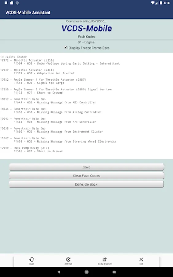 VCDS Mobile is a dealer-level diagnostic system for VW-Audi Group cars (VW, Audi, Seat, Skoda, and Bentley). It provides access to fault codes, live data, and various configuration options in all the diagnostic-capable control modules. For more information, see: