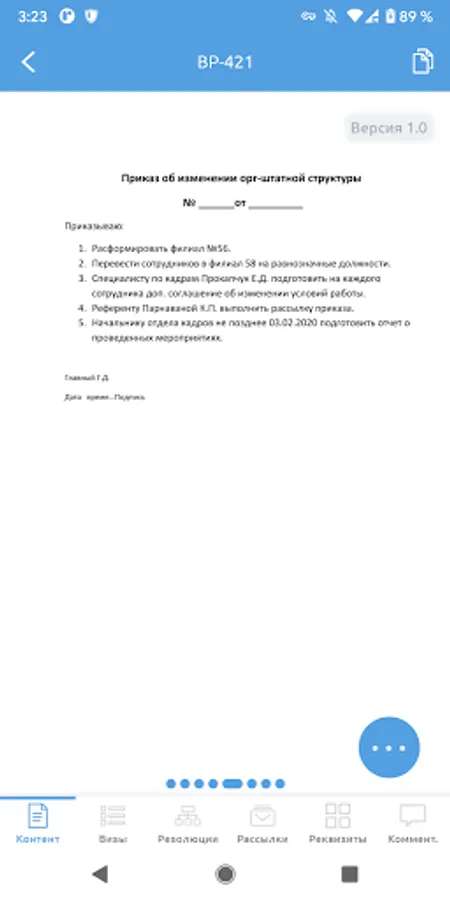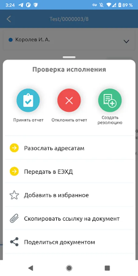 - Execution / rejection of resolutions with the ability to attach a report as a file.