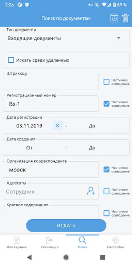 Mobile application for working with the electronic document management system on the Documino platform for PJSC Rosseti Moscow Region