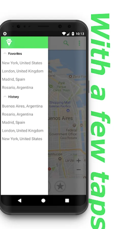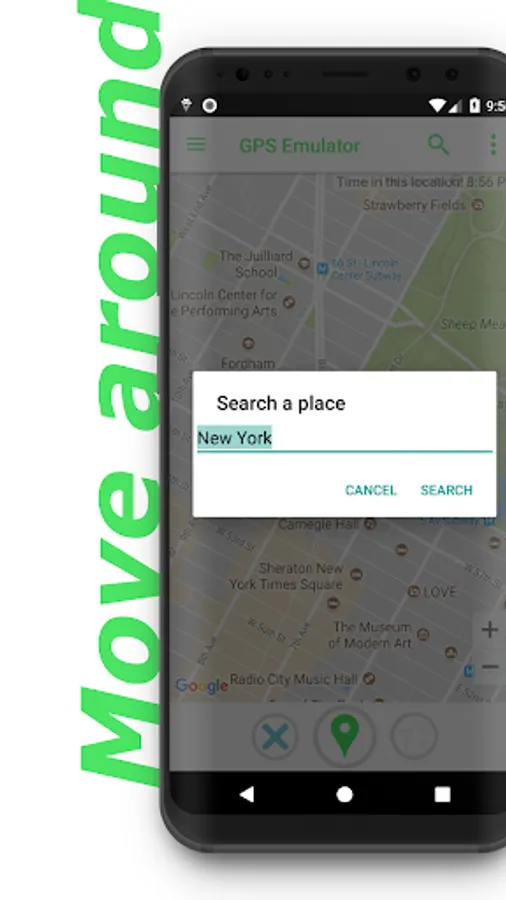 Move your phone to any place in the world with this app! It sets up a fake GPS location so other apps in your phone believes you are there.