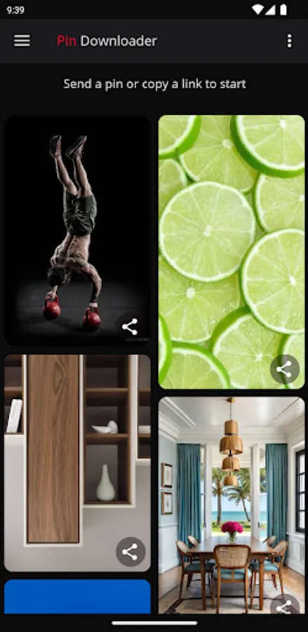 With Pin Downloader you can download videos, photos and GIFs from Pinterest to your cell phone easily and quick in a simple and intuitive interface.