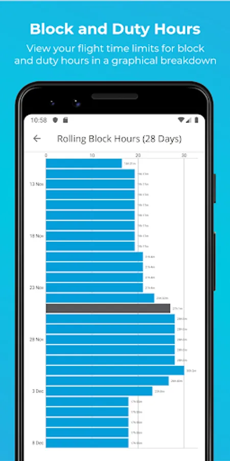 • Block and duty hour graph breakdowns, flight time limits, see your personalized career statistics. export your logbook, your calendar, and lots more!