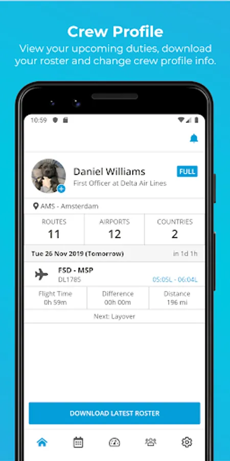 • Enjoy in-depth duty roster details, gate info, 3D airport views and receive layover and meet-up suggestions.