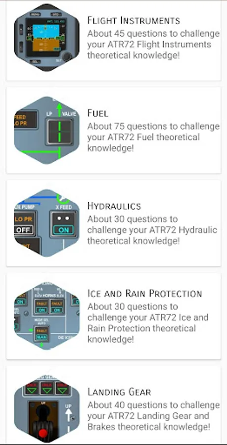 With over 700 questions in the Question Bank, we are confident it will fully prepare you to take your ATR 72 Technical Exam or to stay current and revise the systems. Track your progress, see your exam success rate and increase your technical knowledge.