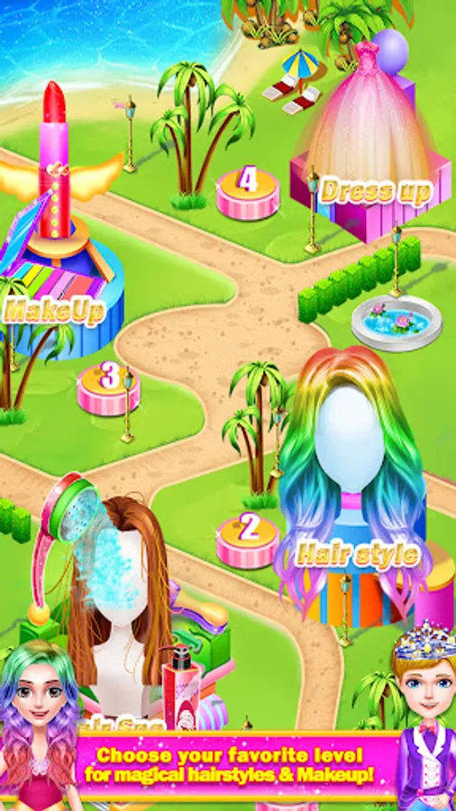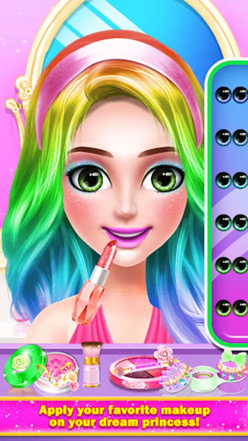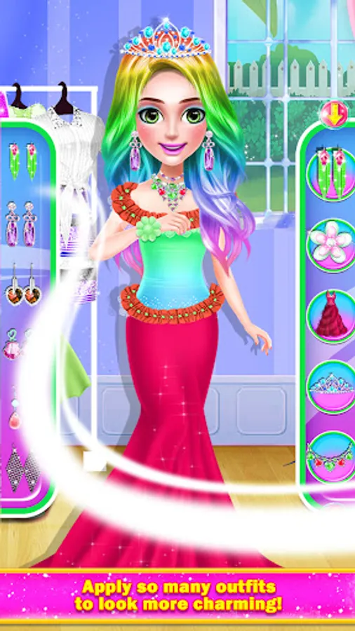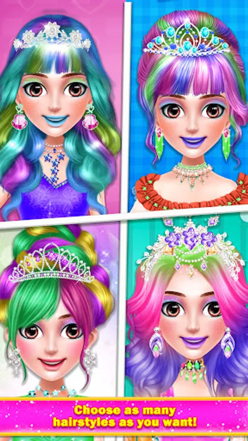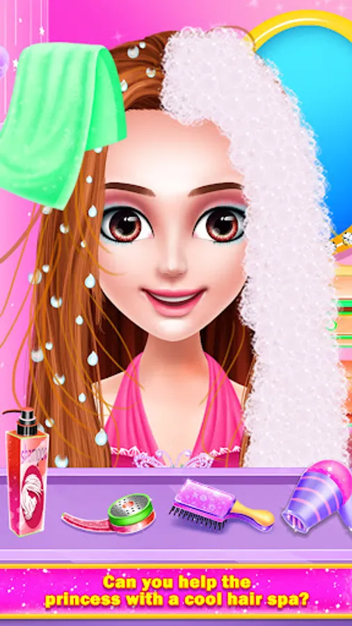 As a royal princess, Cindy needs to represent herself always looking good and chic, but in this makeover game, this particular task becomes your concern and how she will look at her desired date. Try to add some value to her look and get over that classic style because this princess loves the idea of madness. Dive in with spectacular colors and choose as many hairstyles as you like to approach for her. Whatever you choose make sure you accomplish the given steps and the instructions. Now let's go to make some crazy looks. Spray the hair to be smooth and untangled then you could cut the parts that don't belong there. Wash the hair and apply some moisturizer. You might want to change the hair color too and to do that you will use a special colorant. The texture will be changed too. Use the professional devices to obtain the wished style, either is curly, straight or waved. When you wash the hair you will apply the special shampoo and rub it until the foam covers it all. Clean it, and then dry it with the towel and also the dryer to make sure all is done. These steps will be fulfilled in the spa session and hairstyling one. Next, you will come up with a specific makeup that will suit the outstanding design you've just made for the hair. Apply some nude shades or neon depending on which style you have adopted. In the end, you just have to dress her up while you finish the entire aspect with those sparkling accessories.