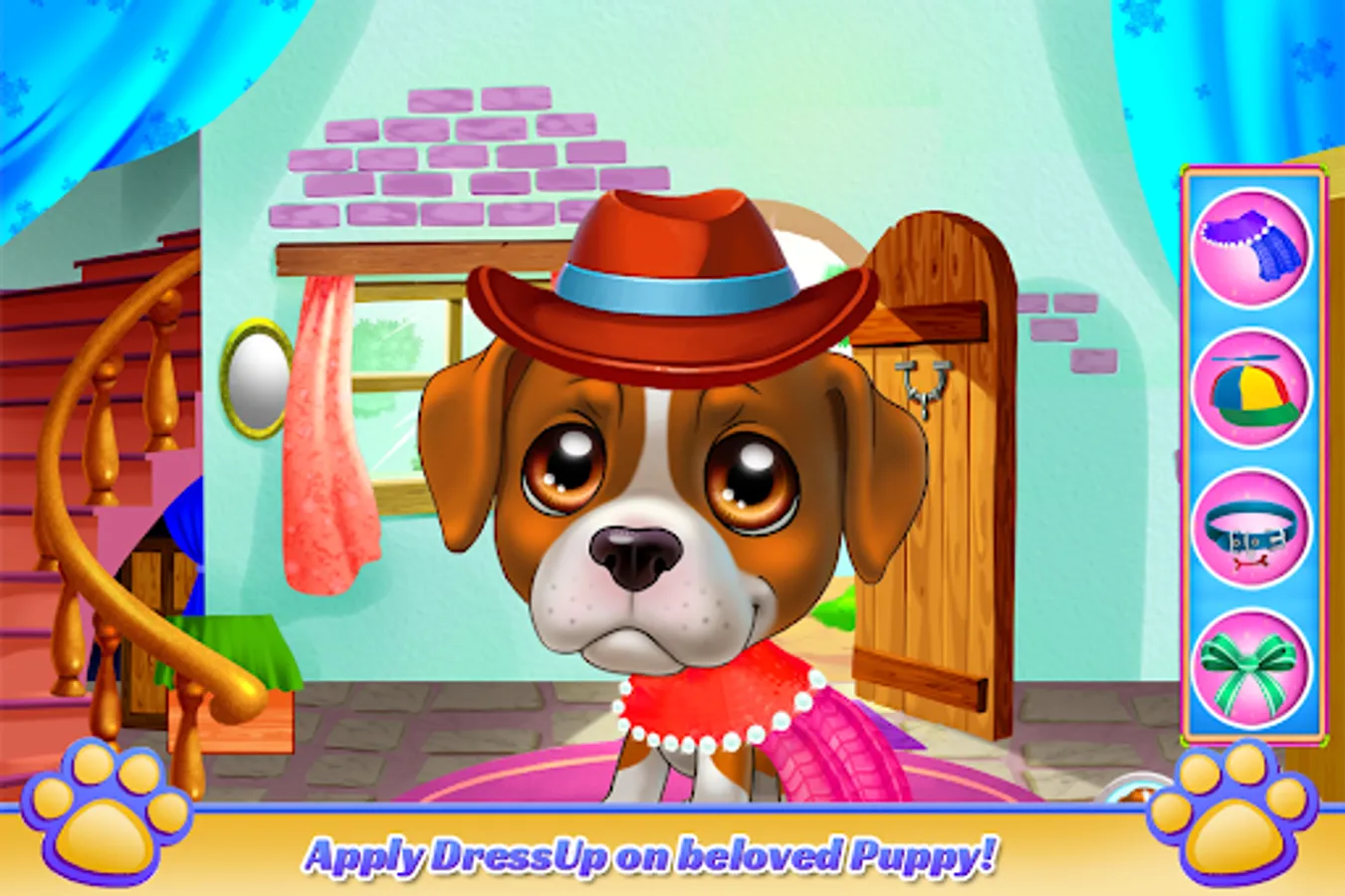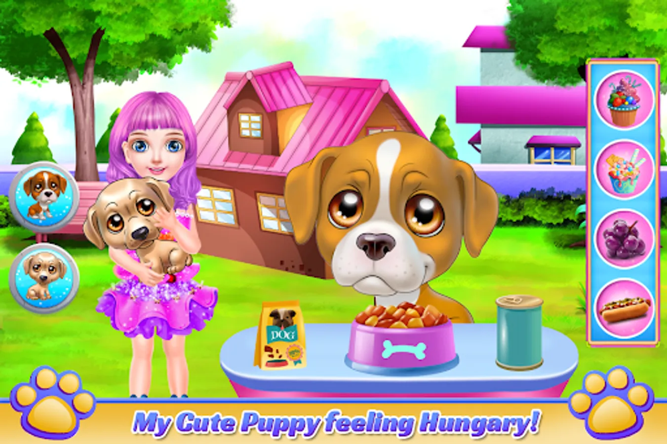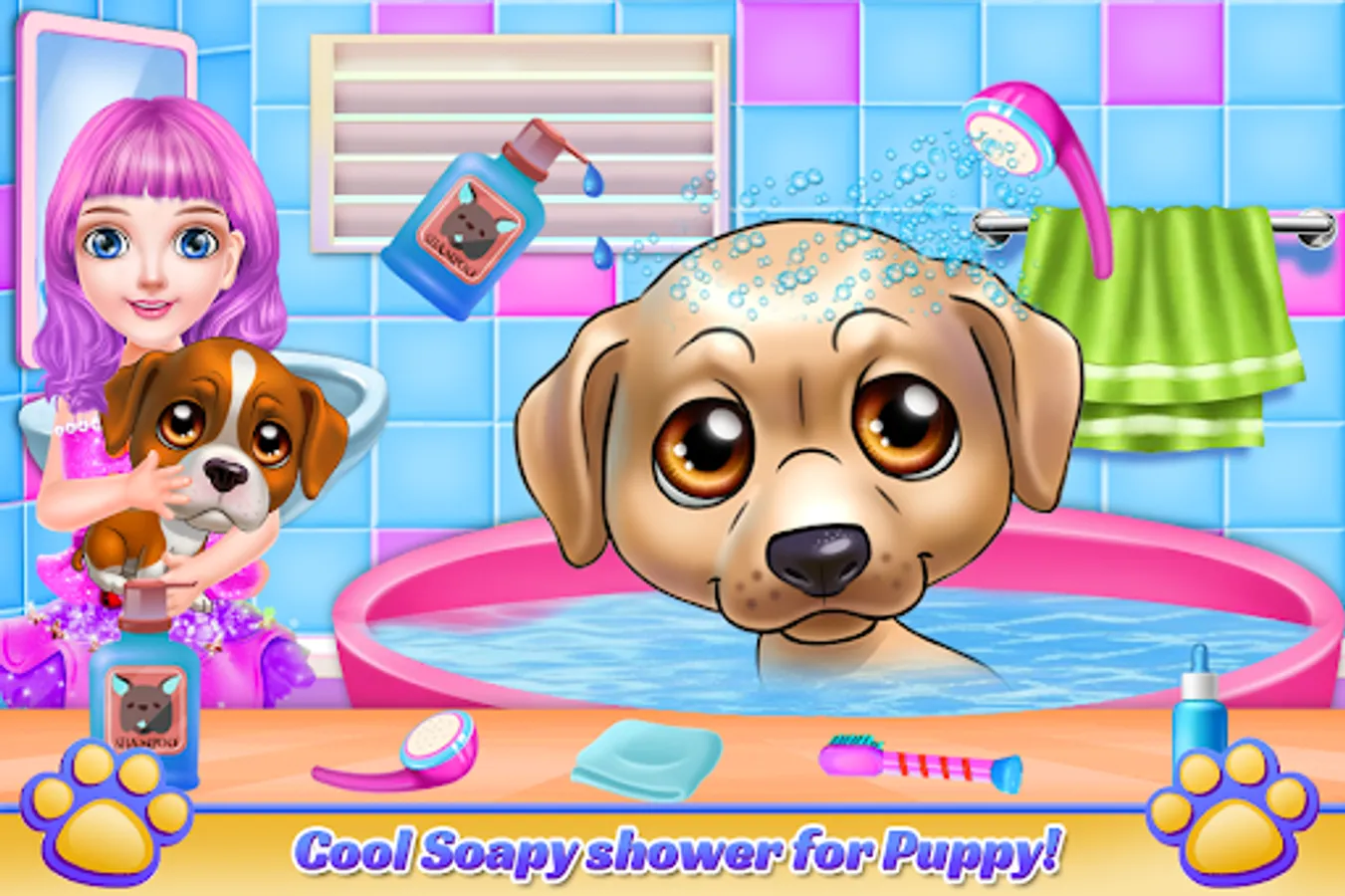 Welcome to the puppy world! Here you will meet different races and multiple stages of cuteness. Be prepared to be shocked by how adorable they are! Your job will be to take care of their needs and of course to have as much fun as you can. Perform relaxing activities and make sure you offer them a day to remember at your dog salon. There will be some tricks you will see and you will have instructions on how to do it, so don't worry. First will be the spa session and here you will be doing the bathing. Wash their teeth and prepare a long and funny bath. Wash each part of the body with suitable products, like soap for the body and shampoo for the hair. After a long bath, the need for food is showing up. You will feed them and make sure you offer a diversified meal. A bowl of milk maybe some dog food, a cupcake or something else for dessert. Once the feeding is done you should be concerned about their health. The following step includes nursing activities. Make a routine check and then try to offer the required treatment for each problem of our dog. Right after, when the puppy is feeling good, you will have to perform fashion activities. Create a unique aspect to suit the puppy and make sure you use your creativity and style to do it. Put on funky accessories, add your mark on their outfits and try to make a difference in their look.