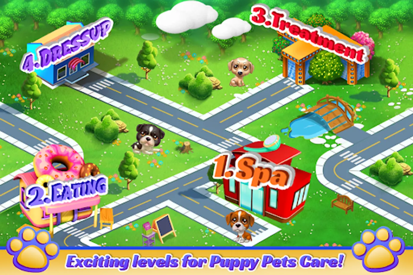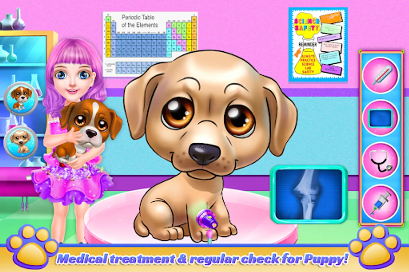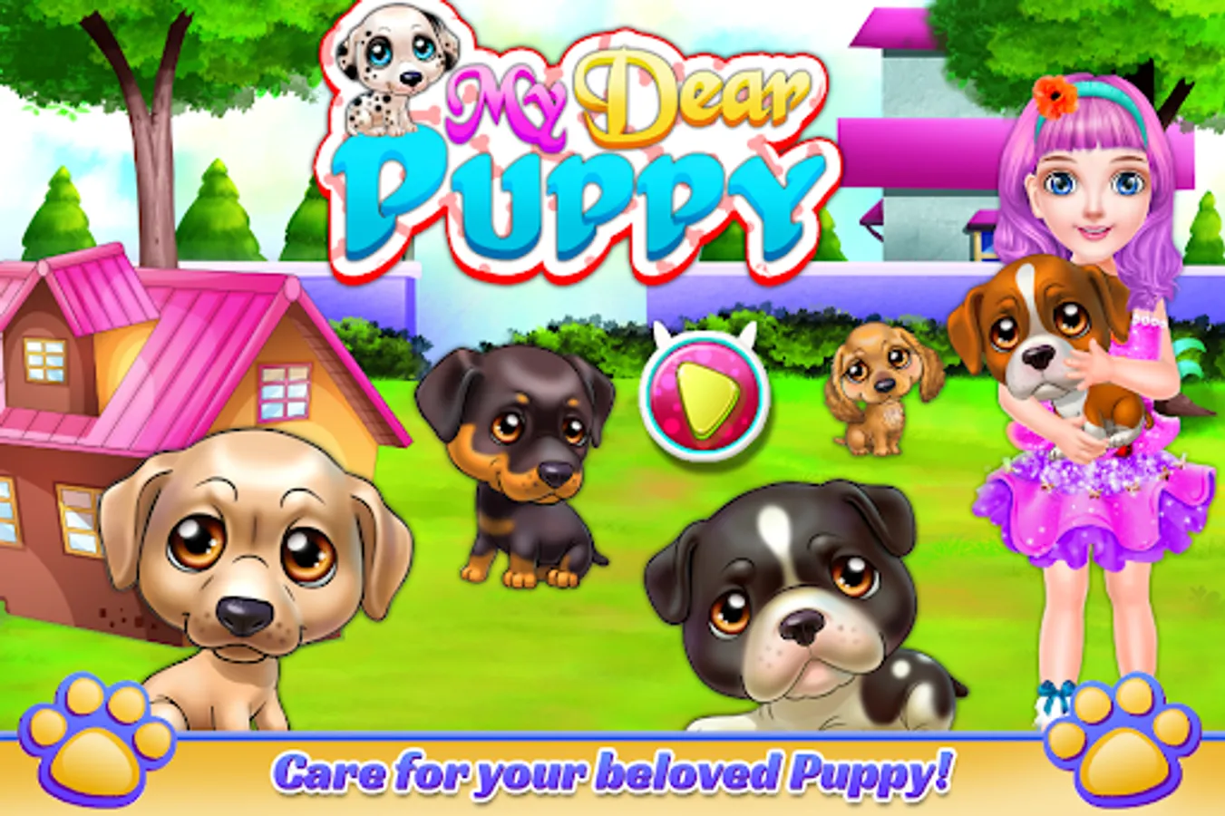 Welcome to the puppy world! Here you will meet different races and multiple stages of cuteness. Be prepared to be shocked by how adorable they are! Your job will be to take care of their needs and of course to have as much fun as you can. Perform relaxing activities and make sure you offer them a day to remember at your dog salon. There will be some tricks you will see and you will have instructions on how to do it, so don't worry. First will be the spa session and here you will be doing the bathing. Wash their teeth and prepare a long and funny bath. Wash each part of the body with suitable products, like soap for the body and shampoo for the hair. After a long bath, the need for food is showing up. You will feed them and make sure you offer a diversified meal. A bowl of milk maybe some dog food, a cupcake or something else for dessert. Once the feeding is done you should be concerned about their health. The following step includes nursing activities. Make a routine check and then try to offer the required treatment for each problem of our dog. Right after, when the puppy is feeling good, you will have to perform fashion activities. Create a unique aspect to suit the puppy and make sure you use your creativity and style to do it. Put on funky accessories, add your mark on their outfits and try to make a difference in their look.