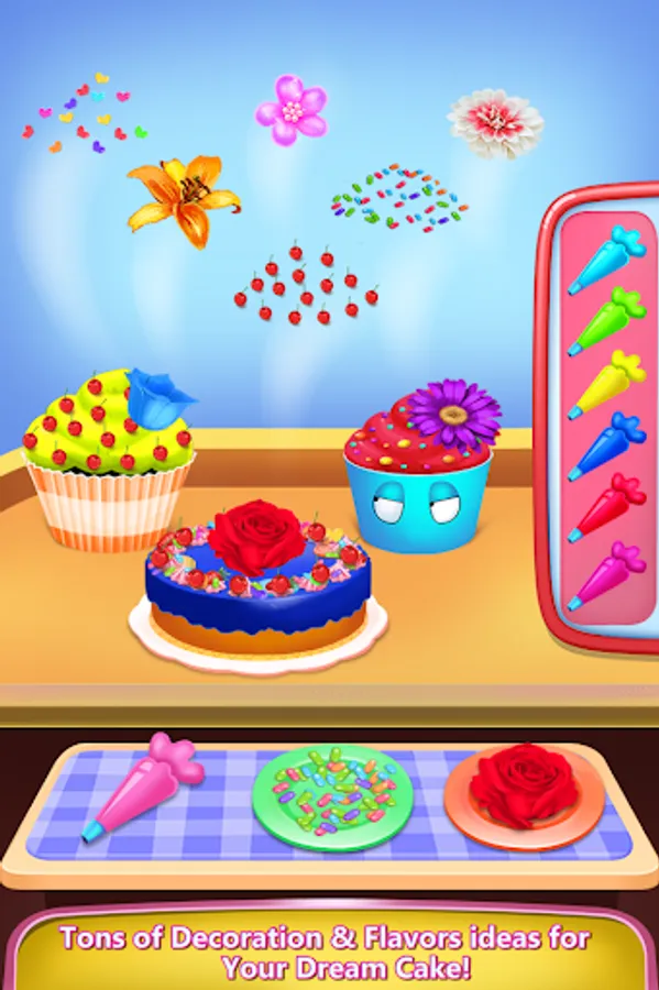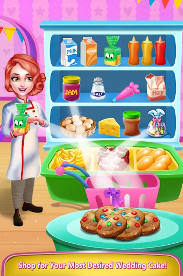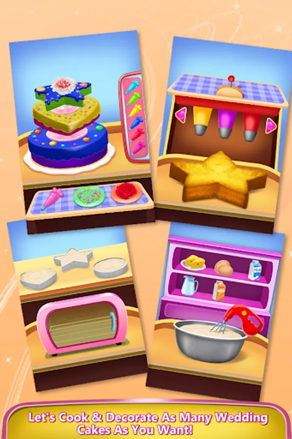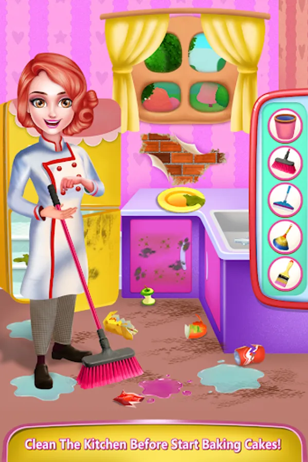 You will need to use lots of ingredients for this recipe, so in order to get them you will walk into the supermarket and search the required ones. Once founded you will pay and go to the baking room with the proper ingredients. Here another challenge awaits because of the present working environment. The kitchen is a mess and needs to be restored before you can cook and bake anything in there. You will clean the floors, remove the stains, throw the garbage and then get rid of those stinky leftovers that are spread all over the kitchen. Replace the rotten food from the fridge and clean it. Also, you will fix the broken things and paint the damage from the wall. To continue your mission with the cake making you should be able to respect your recipe. So use the bought ingredients and prepare the composition. Now you are in the kitchen, you will grab a big bowl in which your dough for the cake is about to be made. Mix the ingredients and don't miss any of them. Once you followed the instructions you will continue with the baking part. Use the tray to lay down the mixture and place the right shape in. Next, you will add the tray into the oven where the miracles are made. When the cake is roasted take it out for decorating. Fruits, sprinkles, yummy details and tasty looks; these are few of the final decorations you will put on. Design as many wedding cakes as you wish and don't forget about the cupcakes too.