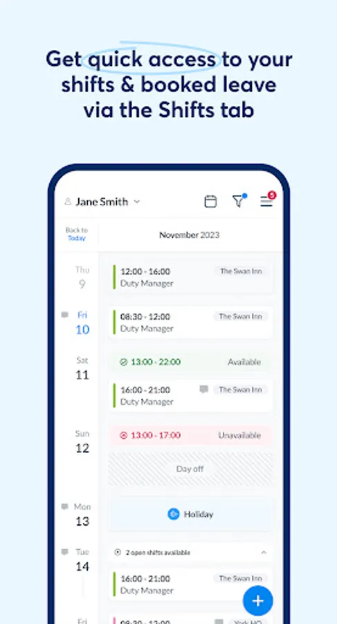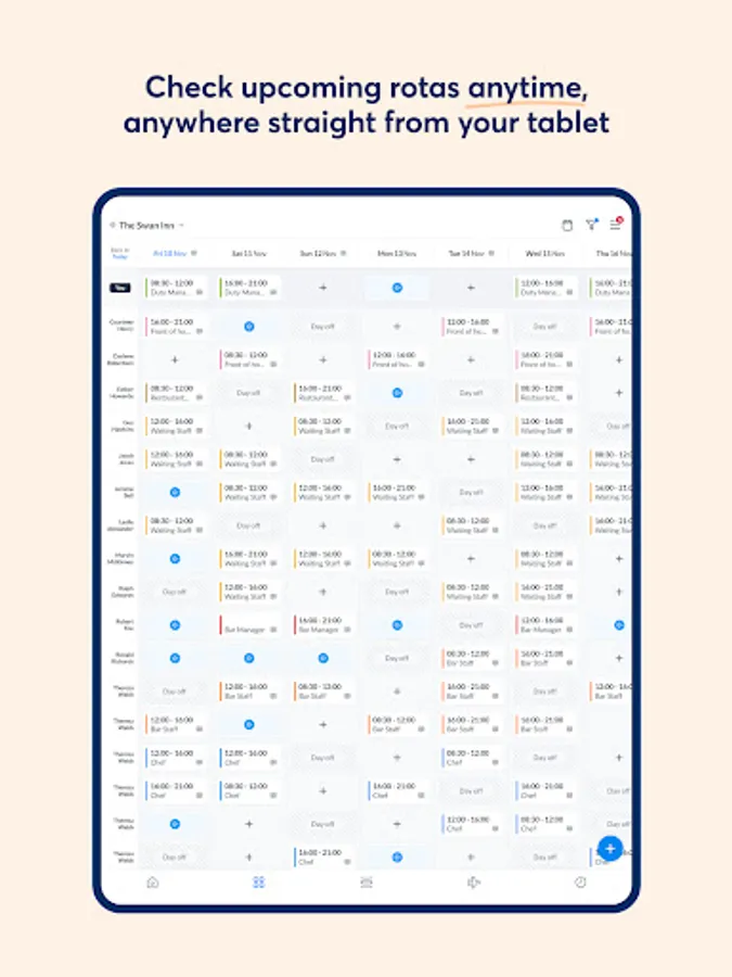 RotaCloud is the easy way to plan and share rotas, manage leave and attendance, and communicate with your team. It also gives your staff 24/7 access to their rota, lets them clock in and out of shifts, and even request annual leave — no more email chains, memos, or WhatsApp messages.