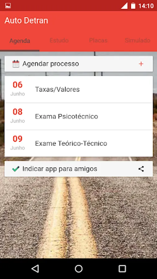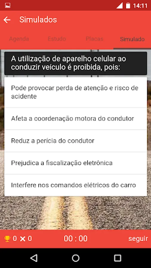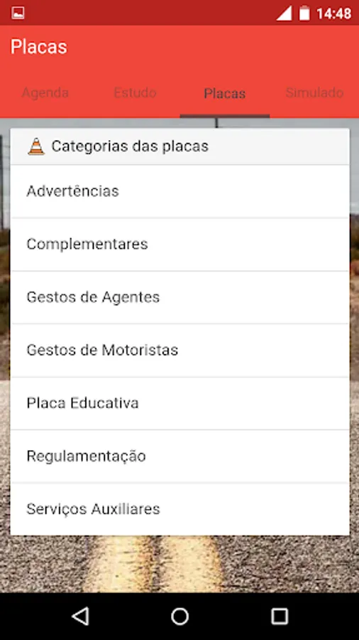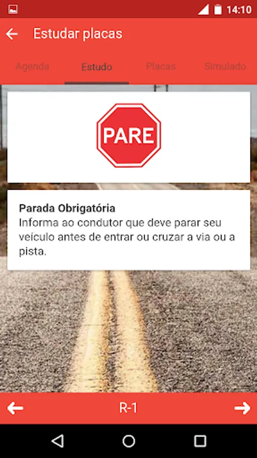 DMV application to study for exams in Brazil. Contains simulated and evidence for study of timing. There are also a function to view the signposts that functions as a game. It has more than 1,000 content between questions, evidence and answers to study.