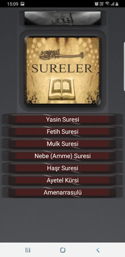 Uygulamada Yasin Fetih Suresi ve Diğer surelerimiz ile ilgili şu bölümler yer almaktadır.