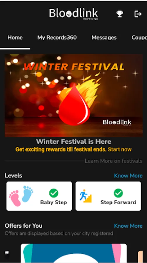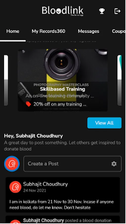 With a view to create more opportunities, Welcome to Bloodlink app. At the mindful world of this app, we offer a diligent interface to upkeep individual health records and updates on a periodic basis and at the same time invoke a call to save precious lives by donating blood. Exciting rewards, offers and packages await the user upon the upkeep of such health records, subsequently building empathy, integrity, devotion and diversity towards the society.