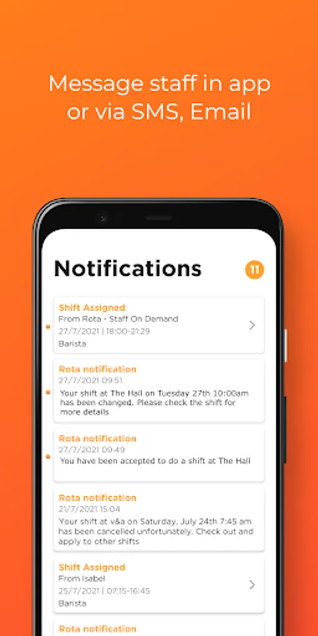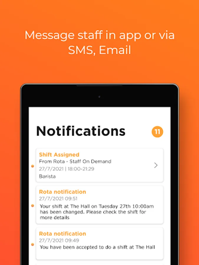 - Seamlessly message your workers/agency staff through in-app notifications, SMS or email
