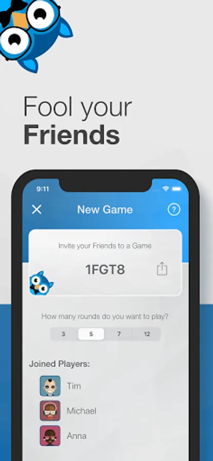 Can you pick the right answer from the deceiving answers of your friends? Get points for guessing the right answer - bonus points for each player you manage to trick into choosing your answer!