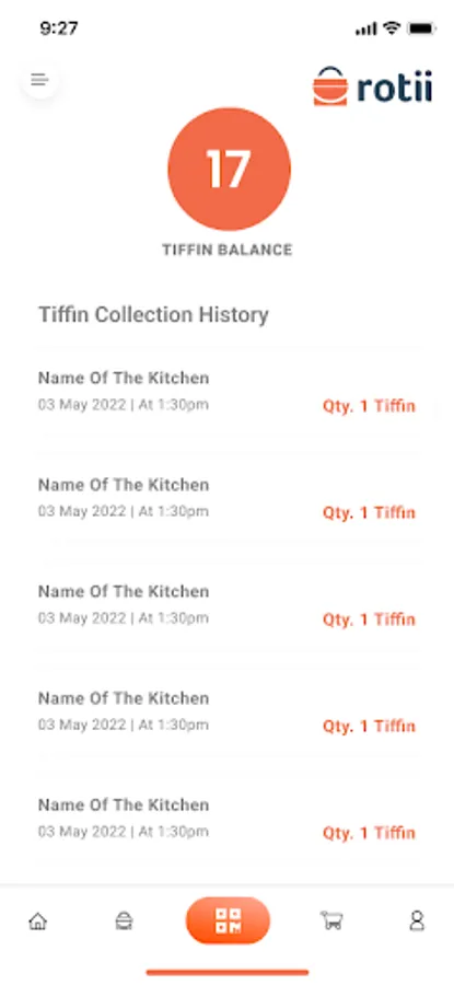Each student has their unique login id and password on the Rotii app where they track their tiffins and present a QR Code for Tiffin pickup at the counter.