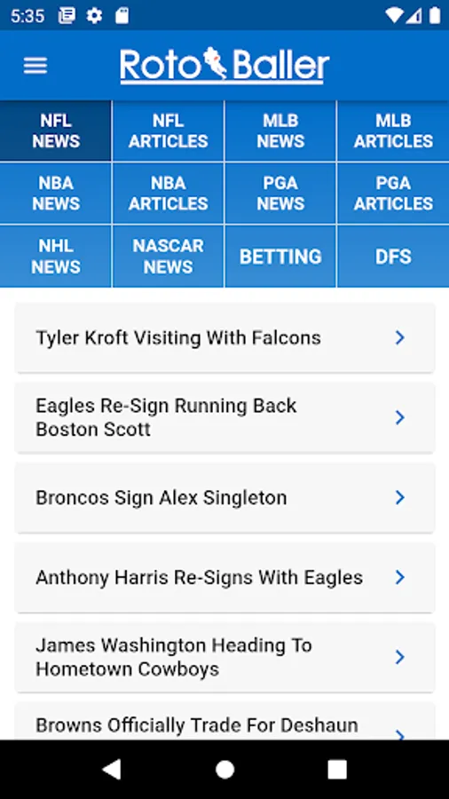 RotoBaller.com’s fantasy sports player news updates for NFL, MLB, NBA, NHL, PGA and NASCAR, all combined into one app. Turn on push notifications to receive our breaking news alerts, timely injury updates, the latest player news updates, and in-depth fantasy analysis articles for six sports - Fantasy Football, Fantasy Baseball, Fantasy Basketball, Fantasy Golf, Fantasy NASCAR, and Fantasy Hockey.