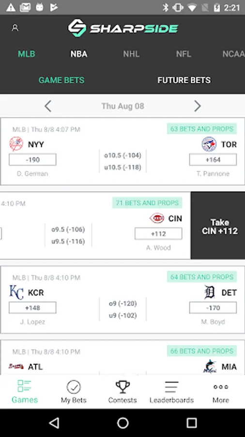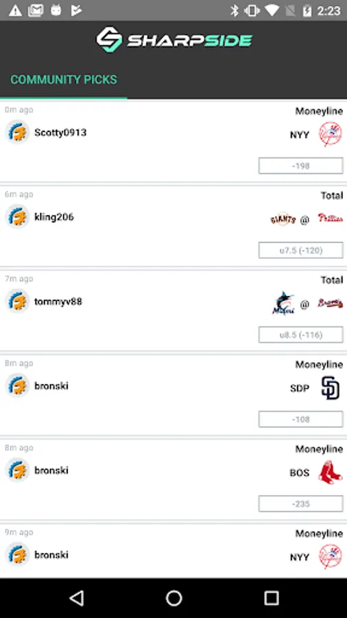 SharpSide is a one-of-a-kind, free sports betting community where you can easily add your favorite bets with just a single swipe, find or post helpful nuggets of advice, and track the best bettors.