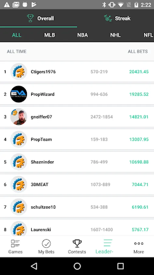Leaderboards - Want to know who the best NFL money line bettor is? Or the top MLB player prop bettor? Or maybe you just want to check out who is the hottest overall bettor in the last week? Come check out our in-depth leaderboards with a wide variety of different filters for you to figure out who you should be following!