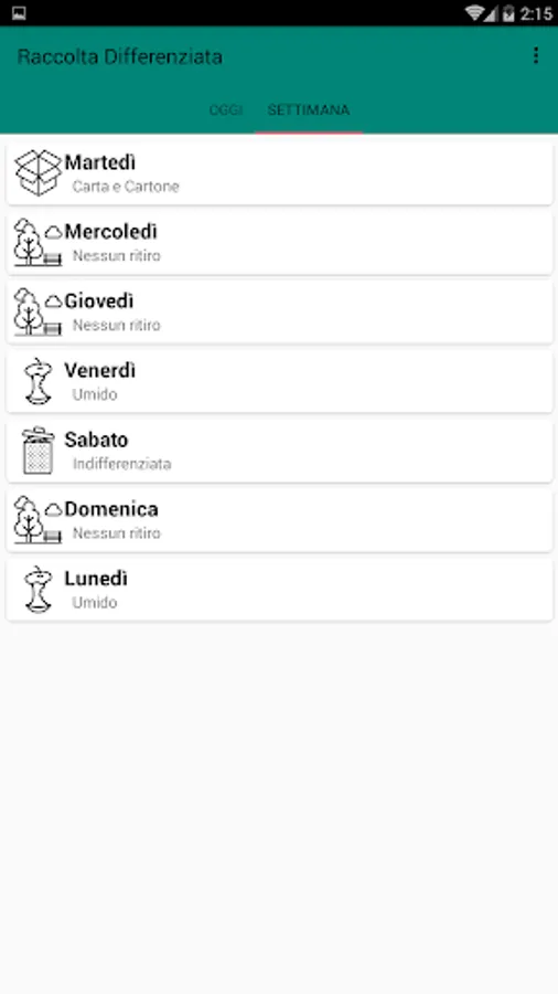The app allows both to view the type of waste that will be collected the following morning and a list of the next 7 days.