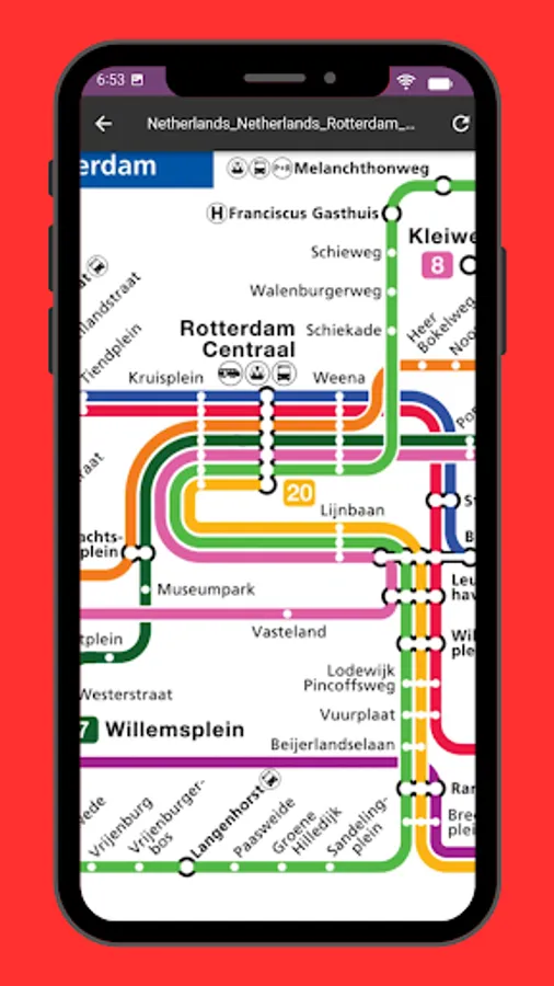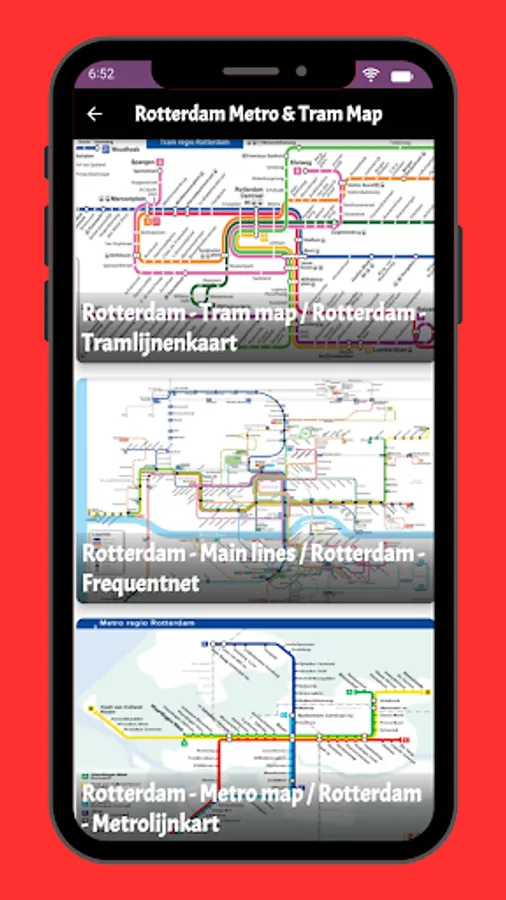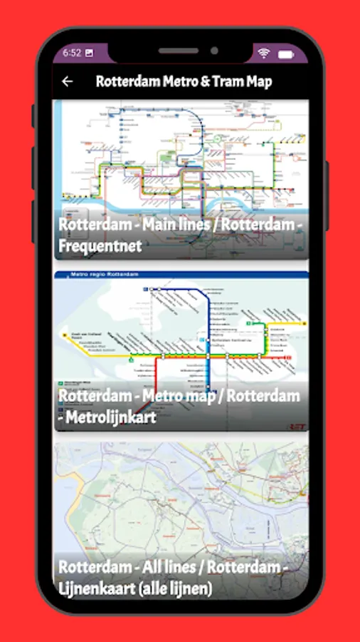 Includes a complete set of maps for the Rotterdam, bus, metro, rail, rail, tram – basically all transit types – from the official sources.