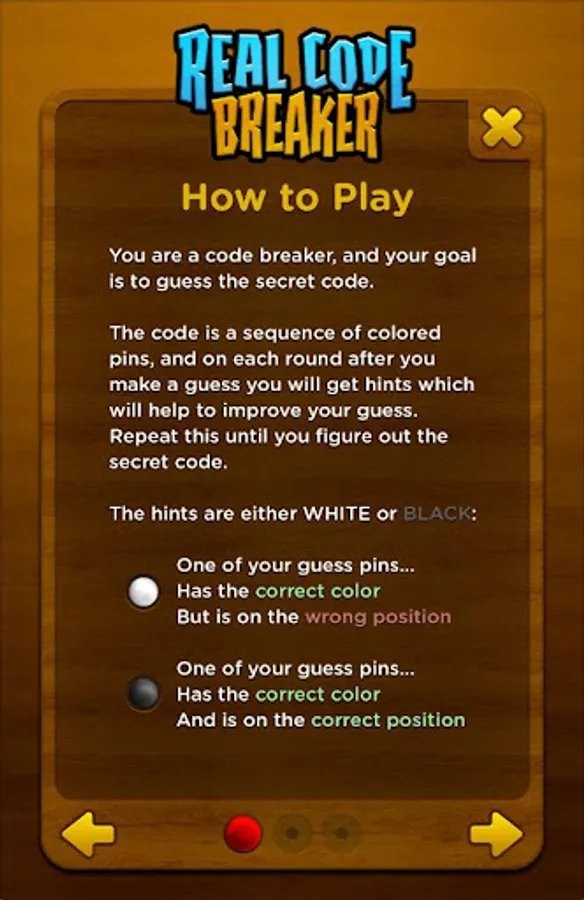 Real Code Breaker is based on the classic board game that is also known as Code Puzzle game, Bulls & Cows and Numerello.