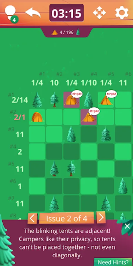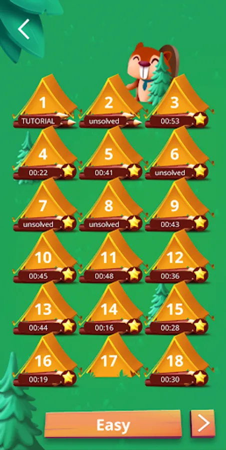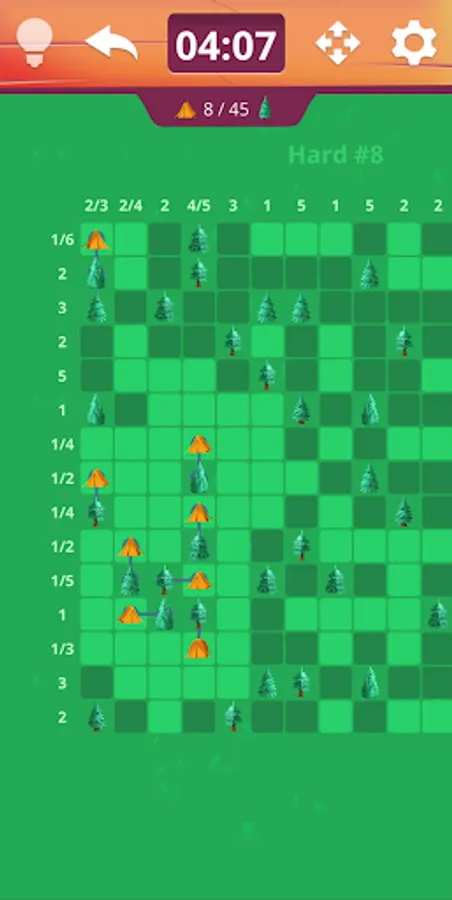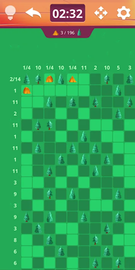 Real Tents & Trees puzzles is a classic logic puzzle where your goal is to place a single tent attached to each tree on the given map. Every tree must have its attached tent.