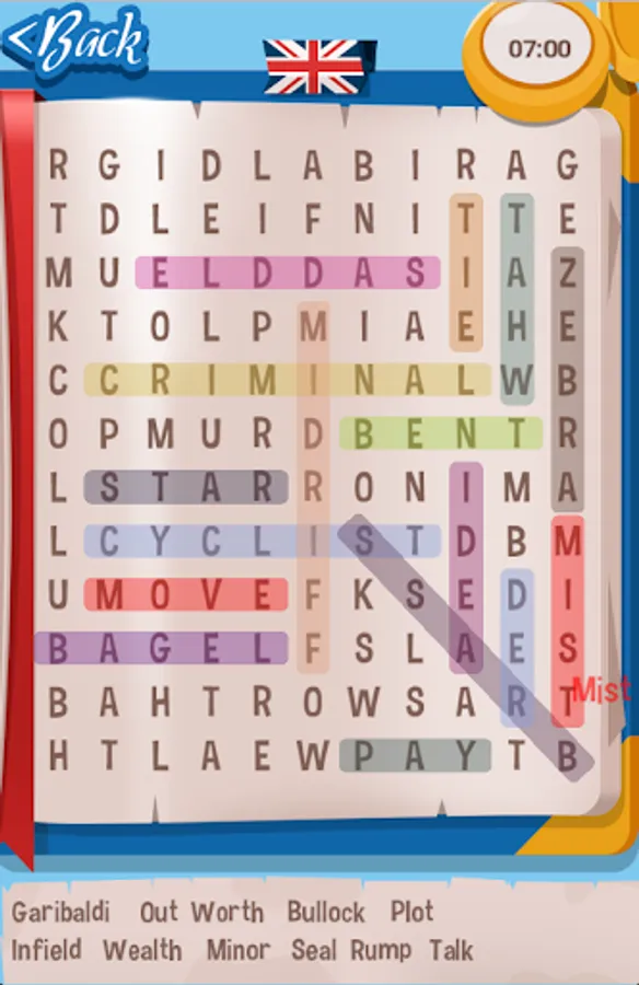 Find words on puzzles of several difficulty levels: Easy, Medium Hard and Insane (tablet only). On harder levels it takes a genius to find the words and solve it on less than one hour - a true word searching master!