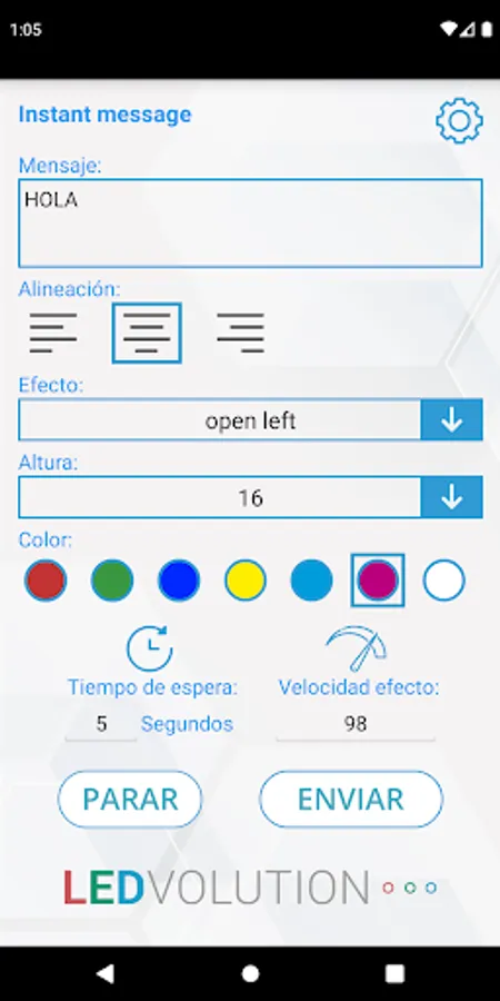 Send instant messages to our led screens with the possibility of changing the size, color, position and effect of the text.
