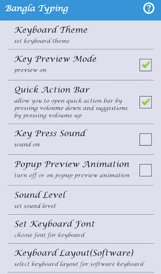 16) Massive customization options which will give better bangla typing experiance using parboti bangla keyboard.