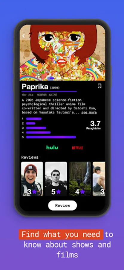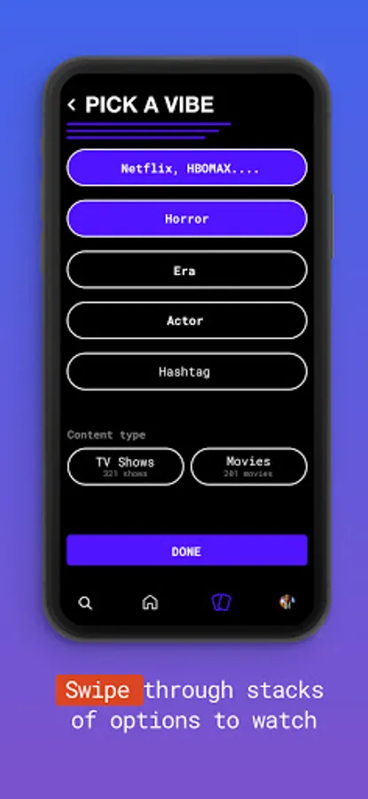 Find TV shows or movies through watching video reviews OR swiping left and right through suggestions you create. Post videos of what you think about streaming content. Get a following from your opinions alone, and be the critic you're meant to be.