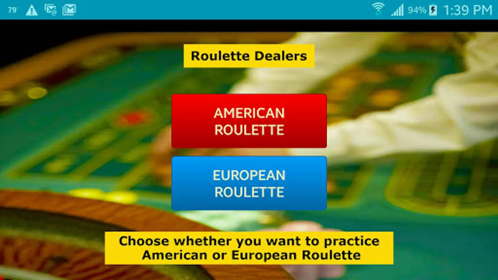 The app is separated into two sections; American Roulette and European Roulette.