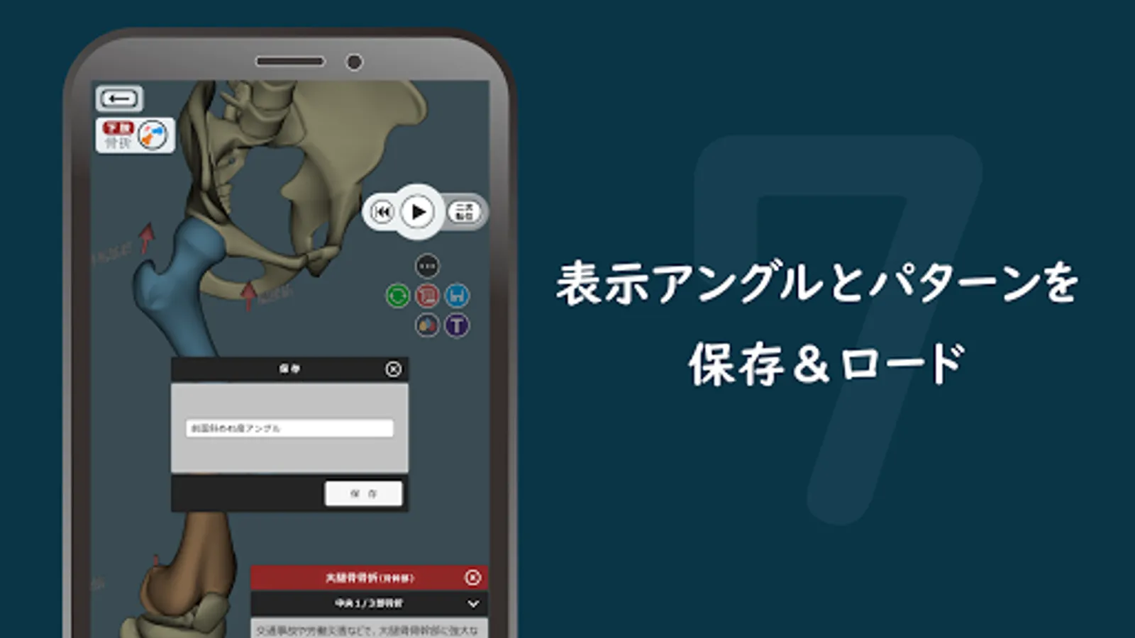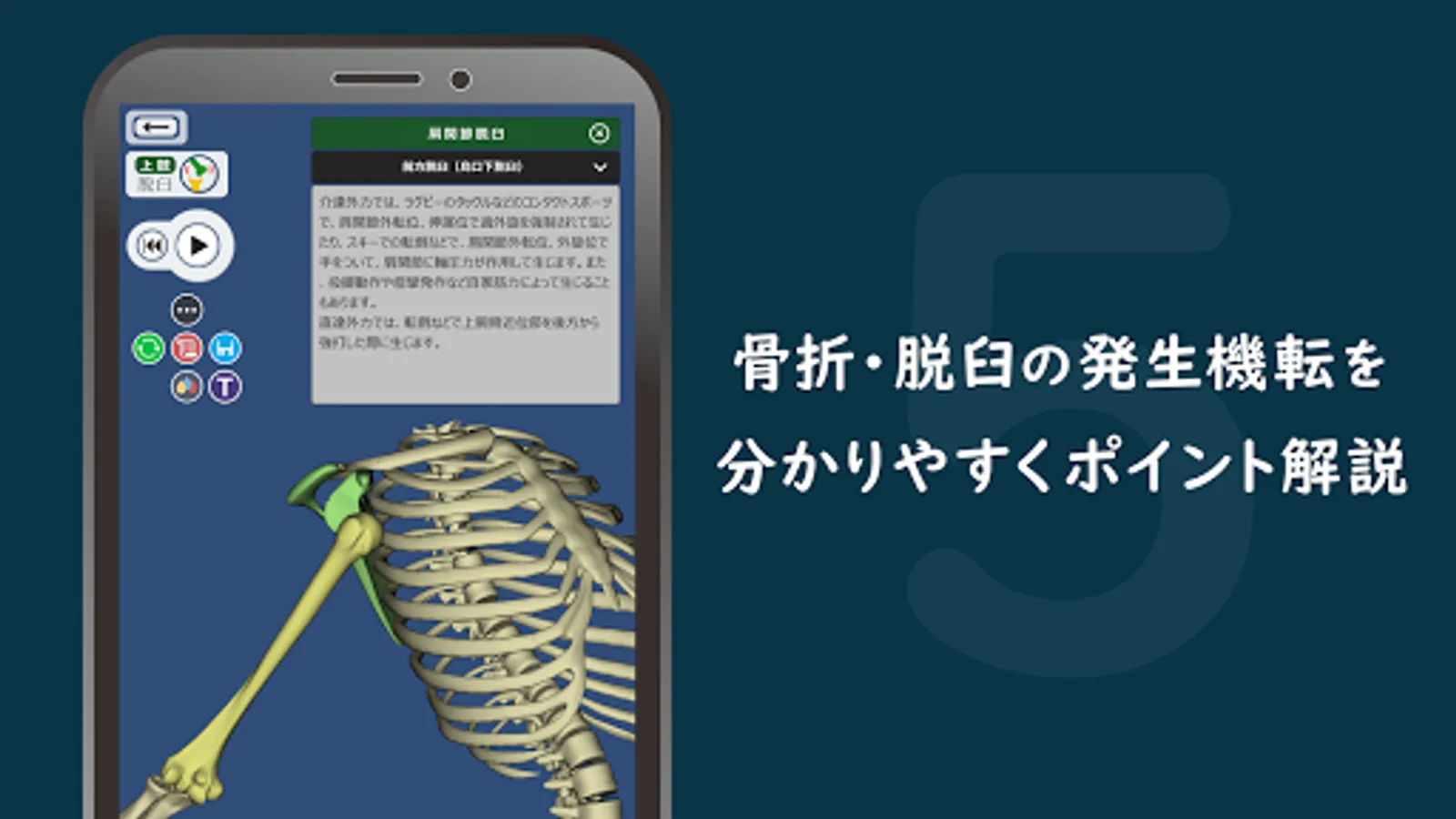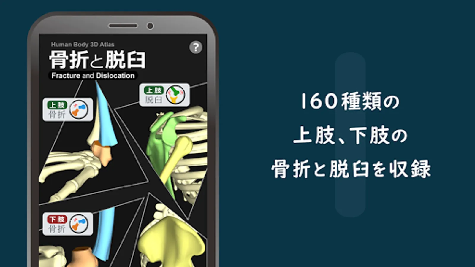An app to learn fractures and dislocations that reproduces fractures and dislocations of the upper and lower limbs with a 3DCG model and animation.