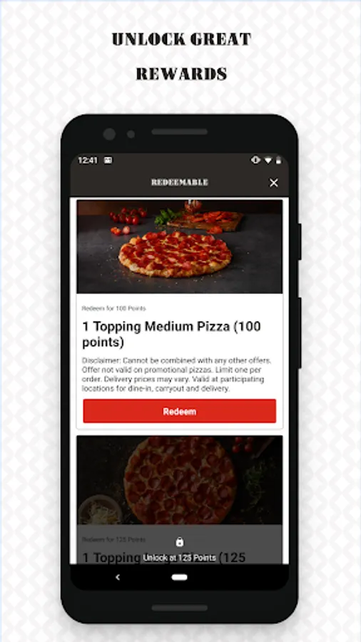 - As you reach specific points tiers you will unlock appetizer, lunch and dinner rewards.