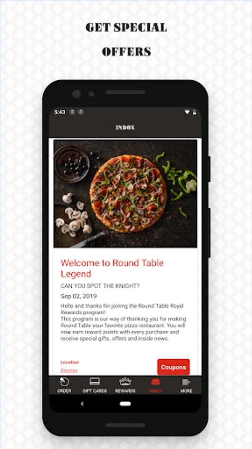 You love Round Table Pizza. Now it’s easier than ever to get the pizza you love through our Mobile App. The Round Table app allows you to order ahead, and earn free pizza through our Round Table Pizza Royal Rewards program.